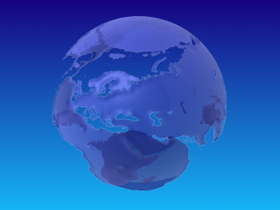 Globus ist unsichtbar oder transparent, Kontinente sind "gläsern" oder halbtransparentAusgangstexturen für den Globus finden Sie im Internet z.B. hier.