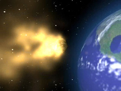 Meteor taucht in Atmosphäre von Planeten ein und beginnt zu brennen.