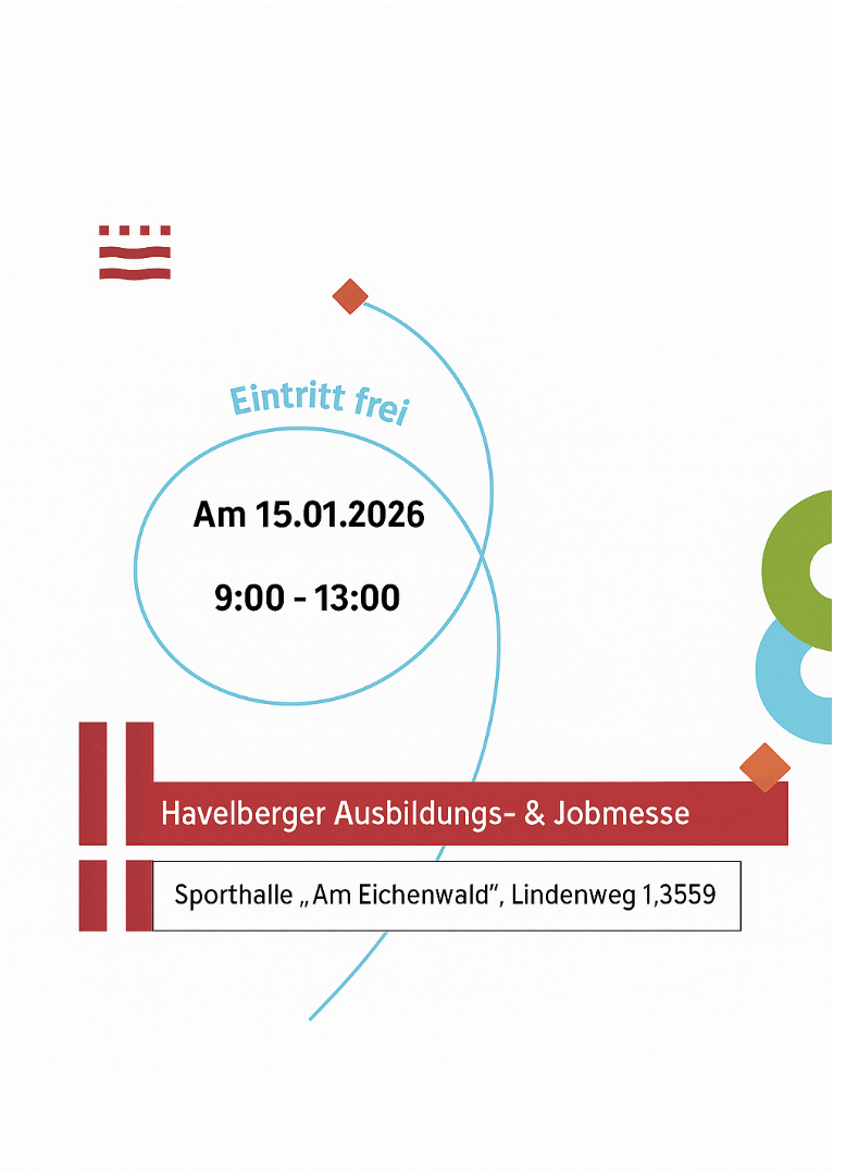 Am Donnerstag, den 15.01.2026, sind wir auf der Havelberger Ausbildungs- und Jobmesse zu finden und beraten Euch zu unseren 25 Studiengängen der 3 Fachbereiche. Ihr findet uns von 09.00 bis 13.00 Uhr in der Sporthalle "Am Eichenwald", Lindenweg 1, 39539 Havelberg. Wir freuen uns auf Euch.